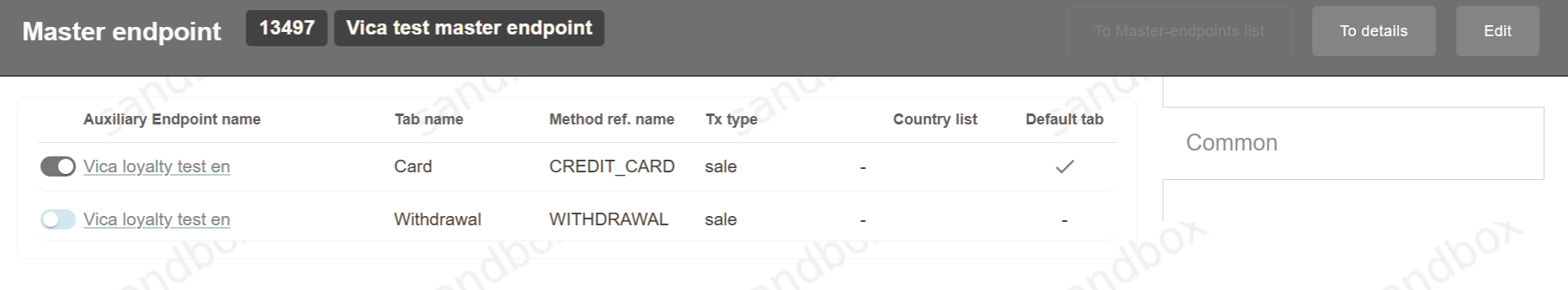 Below is an example of configured Master Endpoint with multiple available payment methods represented by Auxiliary Endpoints connected to it: