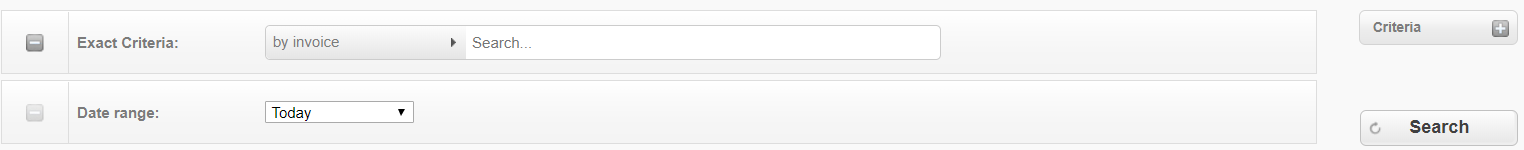 Select one or more search criteria and click Search to find the needed transactions.