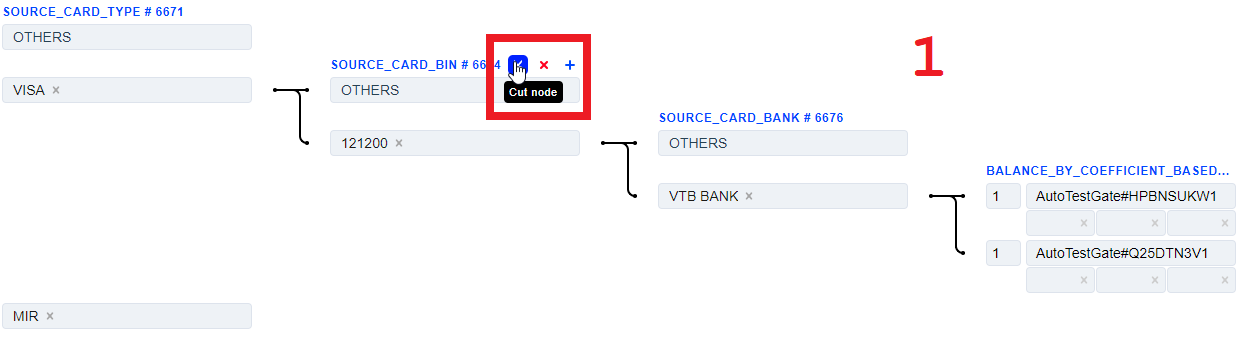 - Delete node - to select another routing or balancing block instead of this one.Hover the cursor over the any criterion of this block to select one of the following actions: