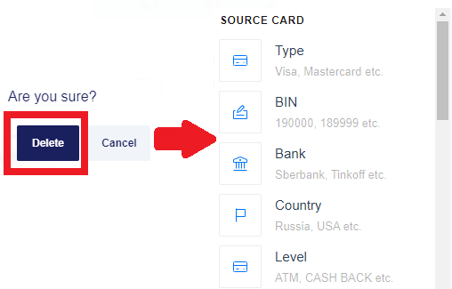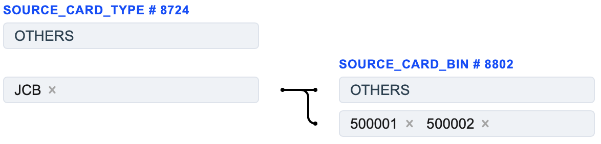 The Source Card Credit Source routing type allows to sort transactions by the sender’s card type. Select the needed card types of the sender and build a further route based on them.