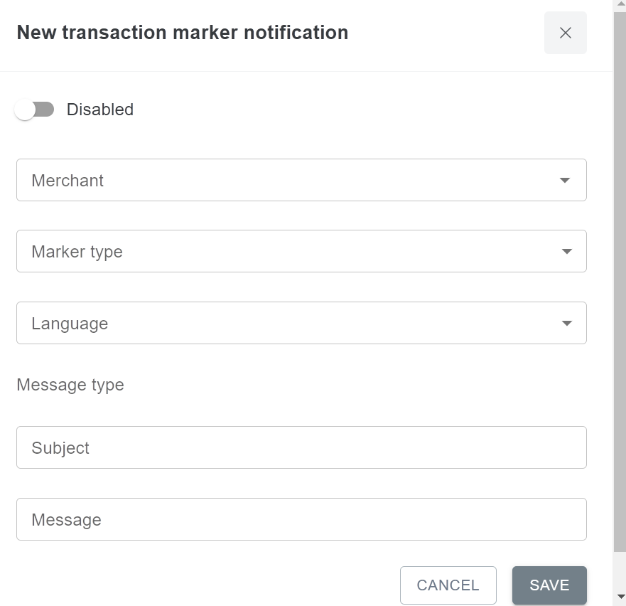 The Transaction marker notification tool is used to notify users about specific issues that might happen to transactions and usually require quick response. Each time the specified transaction marker is triggered, it will send email notification to user’s email address. For example, if notifications for chargebacks are enabled, user will get a new email notification for each chargeback applied to a processed transaction. Email content can be customized.