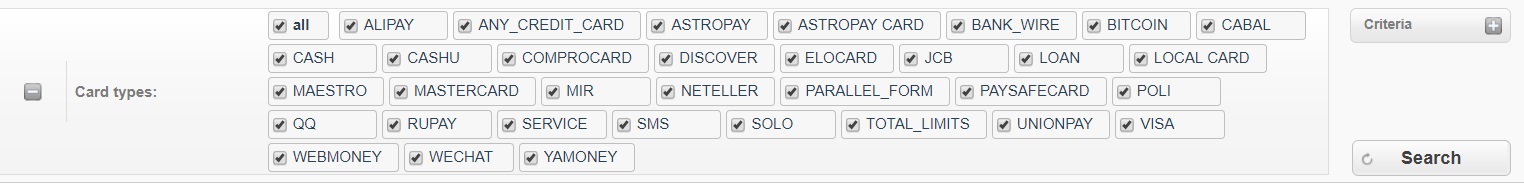 Payer-Gateway Payment Gateway also displays statistics per card payment system, per currency, as well as per payment method.