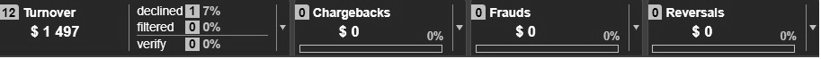 This statistics screen can be used for a visual assessment of the most frequent decline reasons, as well as chargeback and fraud reasons.